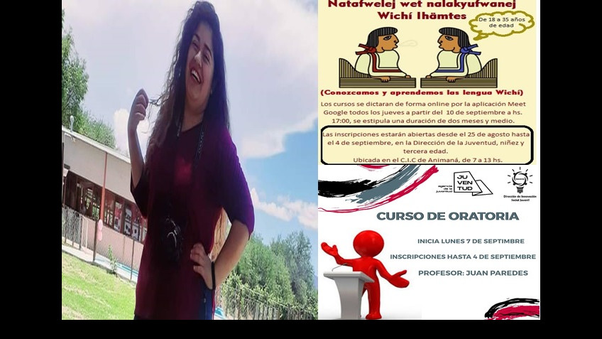 CURSO DE ALFABETIZACIÓN DE LA LENGUA WICHI: Las inscripciones están abiertas desde el día 25 de agosto hasta el 4 de septiembre con cupos limitados edad 18 a 35 años. La misma tiene como fecha de inicio el día 10 de septiembre con una duración de dos meses y estará a cargo de la docente SUSANA KALELY MORENO